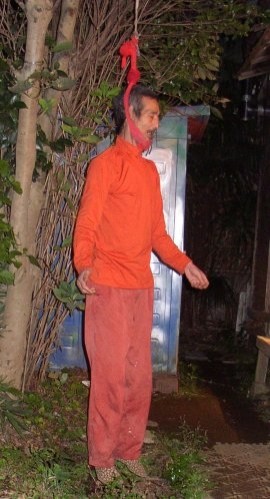 他用「上吊」動作詮釋死的主題,眼睛張開則象徵「生」的強烈意志,這樣的表演震撼人心,死訊曝光後,不少網友表示惋惜,他的表演過程也曾被拍成紀錄片《上吊栲象之庭》。