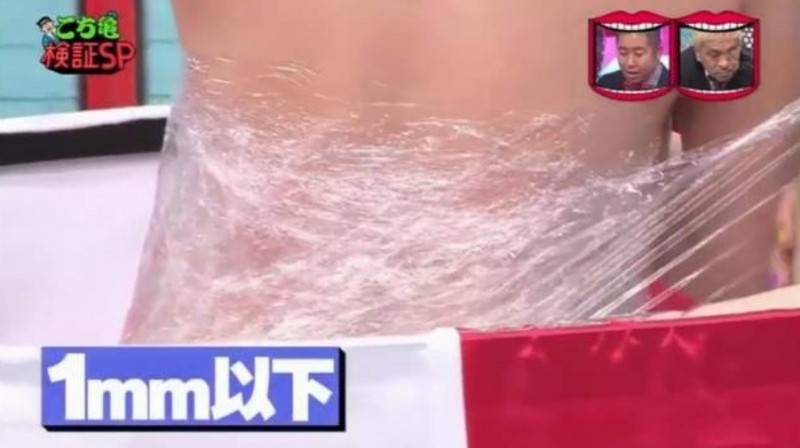 在布幕的包圍下,鈴木富美奈脫去身上的比基尼,使用寬度60公分的保鮮膜纏繞身體,纏10圈後,還能清楚看到其姣好身材,但到了40圈,經攝影棚燈光照射下,已顯得若隱若現,直到第76圈、保鮮膜約2.49公釐厚,便已能完全遮蓋裸體,證明不需漫畫中的30公分。