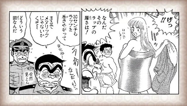 日本人氣動漫《烏龍派出所》中的秋本麗子,曾在121集裡以30公分厚的保鮮膜裹住身體,不讓重要部位曝光,為測試漫畫中浮誇橋段的真實性,13日播出的綜藝節目《水曜日的DOWN TOWN》找來人氣寫真女星鈴木富美奈做實驗。