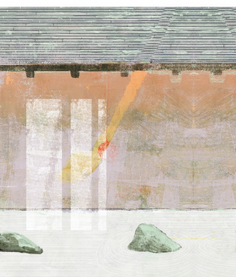 廉航的小飛機在關西機場落地後,乘客們魚貫走下停機坪,空氣裡有海潮味,天氣不比台北更涼,日光卻只有更通透更直率,景物或似漂浮,搭特快去京都,列車從碧麗的海上離開,還沒進入大阪郊區的集合住宅,鄉間多是獨門獨院的小樓,各家窗台上都以乾草編成的障子遮光隔熱,很清雅,剛起了豔羨之心就明白,台北的夏季不能這麼做,炎熱空氣裡染上的氤氳濕氣,能在編草上生出什麼,光想像就叫人心慌,一方水土養一方人,台北景致裡不會有葦簾,以刪去法比較兩地,於是郊區的人家都被我刪去葦簾、刪去了小院,刪去手繪的社區公告、刪去靜默的投幣販賣機與挑著烏龍麵帘的潔淨樓宇,在我醒悟之前,我已刪去了眼前一切,他鄉的他,原是他人的他。