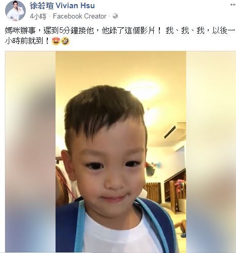 徐若瑄十分疼愛兒子「Dalton」,今她上傳了一則影片並寫到:「媽咪辦事,遲到5分鐘接他,他錄了這個影片! 我、我、我,以後一小時前就到!」影片中Dalton對著鏡頭說:「媽媽我下課了妳在哪裡?我愛你!」並對著鏡頭露出笑容,童言童語的可愛萌樣讓人融化。影片一出網友也紛紛留言:「真是可愛撒嬌的寶貝」、「這帥哥長大不得了呀!笑容真是融化人!」