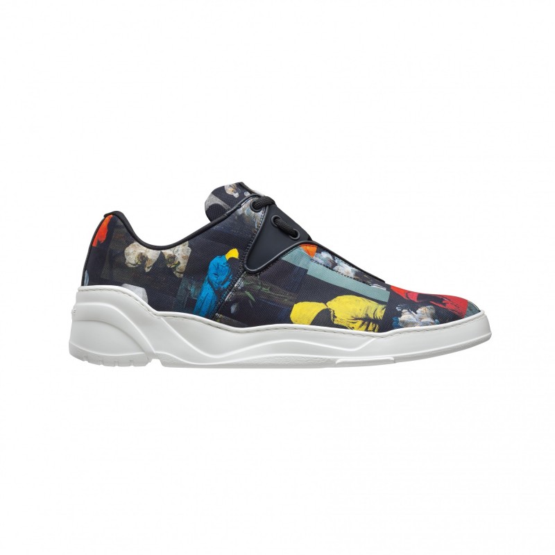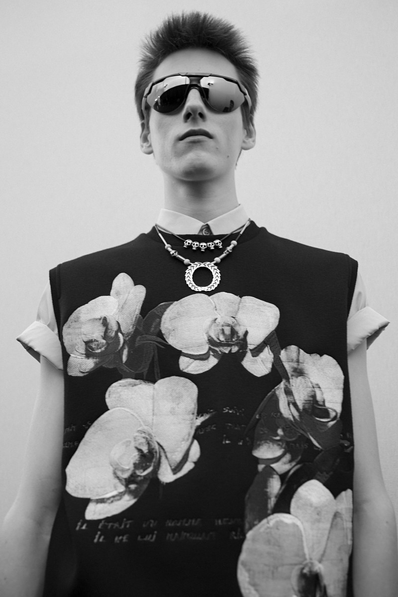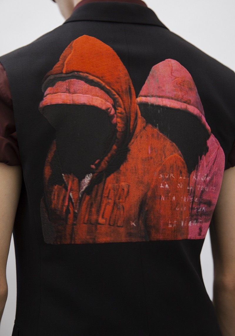 生於1959年的Francois Bard是巴黎的當代藝術工作者,對17、18世紀描繪宗教的藝術畫作十分著迷,亦影響他千姿百態的創作主題;通常,他繪製的人物形象皆源自身邊親近的人,包括他的鄰居、好友或朋友,且蘊藏強烈的深層訊息。這次,Dior Homme運用轉印或刺繡工法,將Francois Bard於黑色背景所描繪、穿著連帽衫的人物輪廓,以及蘭花等布面油畫展現在這一季的時裝、配件、鞋履和滑板設計,宛如為每件作品賦予不同的神秘色彩。