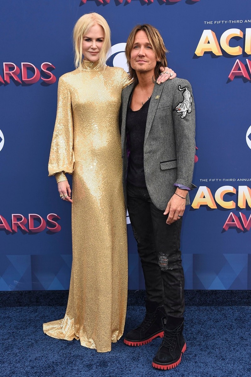 〔記者林欣若/台北報導〕妮可基嫚(Nicole Kidman)與老公奇斯厄本(Keith Urban)相偕出席第53屆美國鄉村音樂學院獎,妮可基嫚身著Michael Kors Collection 訂製款金色亮片禮服,秀出白皙美背。