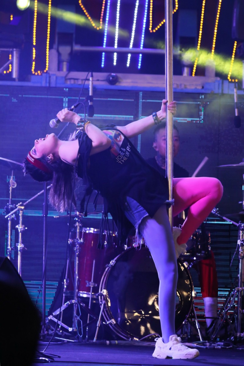 〔記者王心妤/台北報導〕澳門賭王千金何超儀帶領「何超與海膽仔樂團」成員,14日來台展開巡迴演唱。為了貼近民眾,她撂出學好的台語:「搭給賀!我是何超儀。」更演唱謝金燕經典歌《嗶嗶嗶》,大秀鋼管舞,讓觀眾看得直呼過癮。