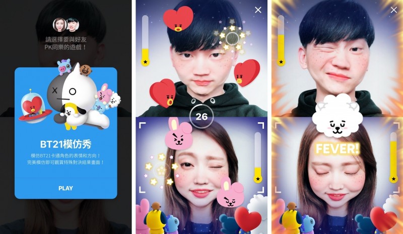 首波推出「怪獸擊滅砲」和「BT21模仿秀」2款新遊戲,未來會持續增加。「怪獸擊滅砲」畫面上會不斷出現怪獸泡泡,用眼睛、並張開嘴巴進行瞄準,成功瞄準就能消除怪獸泡泡。「BT21模仿秀」則是運用臉部模仿框框內BT21角色的表情與方向,模仿成功即可消滅BT21角色泡泡。