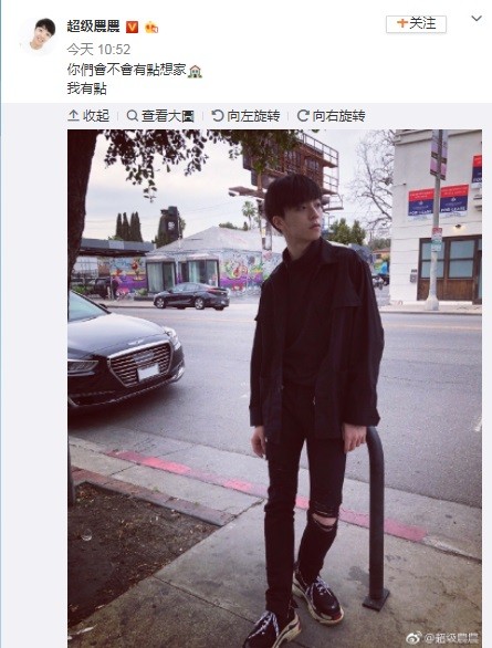 年僅17歲的陳立農獨自在異鄉打拚,想家在所難免,今日他在微博PO出一張全身黑的照片,倚靠在欄杆上,眼神若有所思的忘向北方,一向笑臉迎人的他露出憂鬱神情,有些低落的說:「你們會不會有點想家,我有點。」短短幾個字卻流露出濃烈的思鄉之情,讓粉絲們看了相當不捨,紛紛表示「不僅想家,還很想你啊」、「農農快回來吧」,也不忘安慰他「出外照顧好自己,農媽媽和媽媽粉才不會擔心」、「會想家啊,但是這是成長的必經之路,加油喔」。