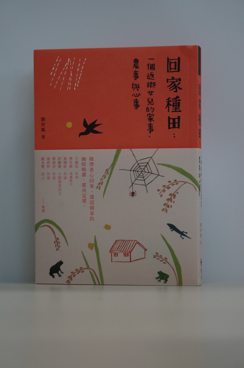 劉崇鳳(1982-)繞了一大圈還是回家了,橫跨了中央山脈,從花蓮壽豐平和村出發,落腳在高雄美濃阿嬤家,捨棄了縱谷、海洋、志同道合的朋友,把自己和伴侶小飽投入緊密的原生家庭親子網絡、半生不熟的家族親戚裡,她看著小飽種起爸爸的田,用阿嬤留在書桌抽屜裡的布袋針手縫穀袋,而她就在那張書桌前坐了兩年,在繁雜的家務農事空檔間,寫下了《回家種田》。