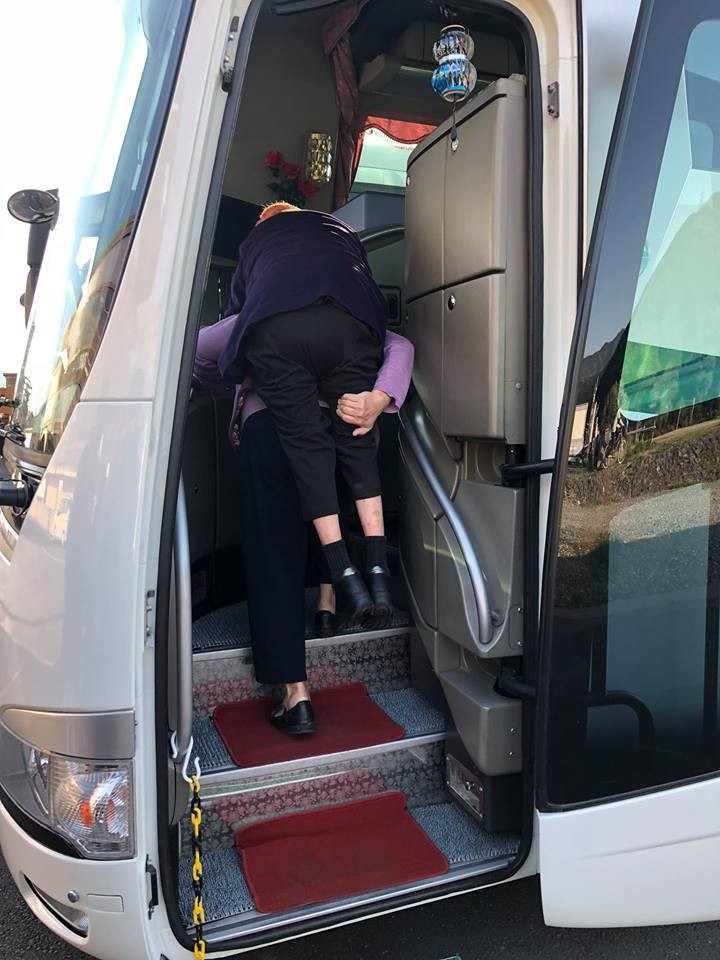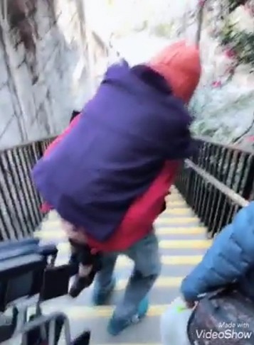那段旅途中,還碰到上下山的嚴峻考驗,「我們經過上坡、下坡、顛簸石頭路,哪怕遇到長長階梯,女兒女婿就一個人拿輪椅,一個人揹著」,每一餐更是女兒、女婿拿著湯匙,一口口細心的餵阿嬤吃飯,「這中間沒有不耐煩語氣,我還一直聽到:阿母,很棒喔!」