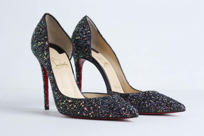 Christian Loubotin Iriza Glitter黑色亮片高跟鞋。(Christian Louboutin提供)