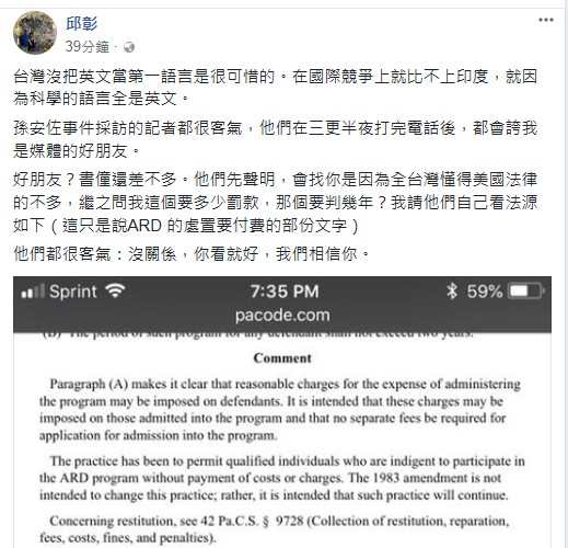 對於被媒體當成翻譯,邱彰無奈說:「台灣沒把英文當第一語言是很可惜的,在國際競爭上就比不上印度,就因為科學的語言全是英文。」她指出,孫安佐事件採訪的台灣記者都很客氣,「他們在三更半夜打完電話後,都會誇我是媒體的好朋友。」