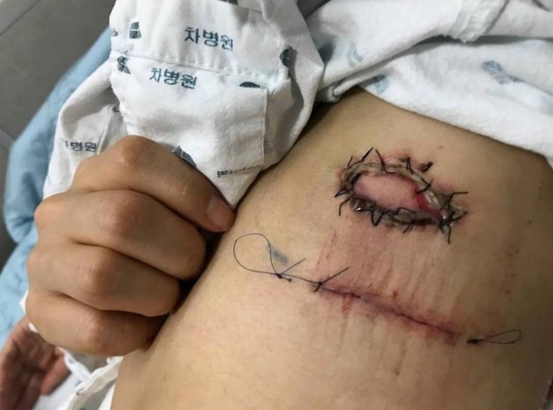 韓藝瑟日前在Instagram公開傷口照,縫針位置不僅呈蜈蚣狀,周遭還出現紅腫、線頭外露,她心碎說:「我的心無限崩塌,老實說,不管什麼賠償都無法安慰我!」過沒幾天又貼出拆線照,她的傷口已出現潰爛化膿等情況,對於以身體為資產的演員來說,無疑遭受打擊,「我真的......感覺很糟糕。」