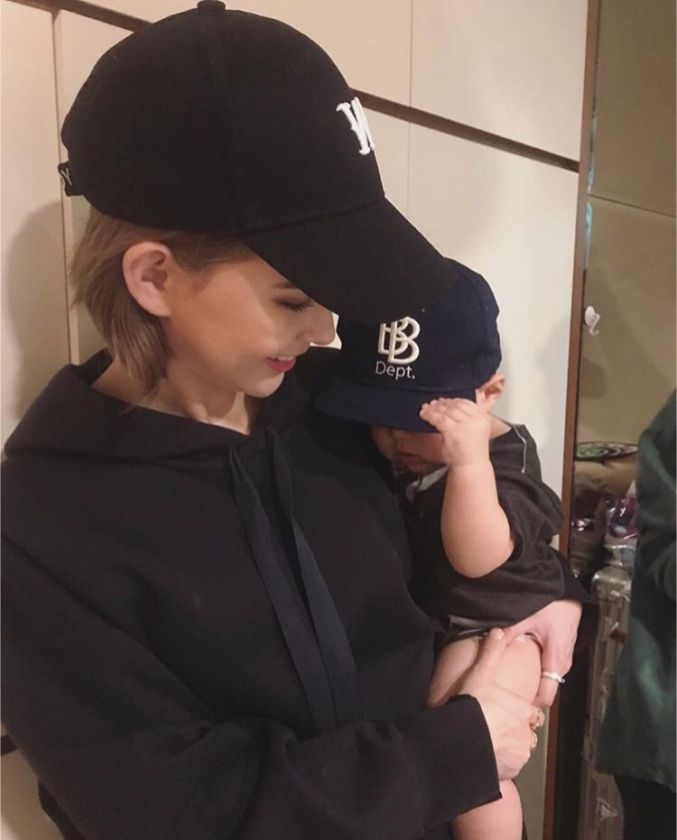 昆凌用英文寫著:「Like father like son」(有其父必有其子),而羅密歐手抓住帽沿的動作,也和爸爸很相似,一雙肉肉的腿,也看得出是頭好壯壯的baby。