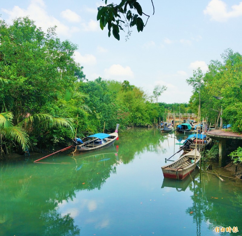 沿途探祕,泛見榕樹與其糾結樹根樂活於此間;魚兒優游瑪瑙般澄澈水中,水草上的晶瑩漣漪即興獻上迴旋舞;長尾船營造泰式威尼斯風光,如此閒逸天地間,更不時可見儷影雙雙漫遊,添增浪漫。至於孩童遊客,則爭相躍入游泳區段,濺起水花的聲響與歡笑聲,雙雙迴盪林間。