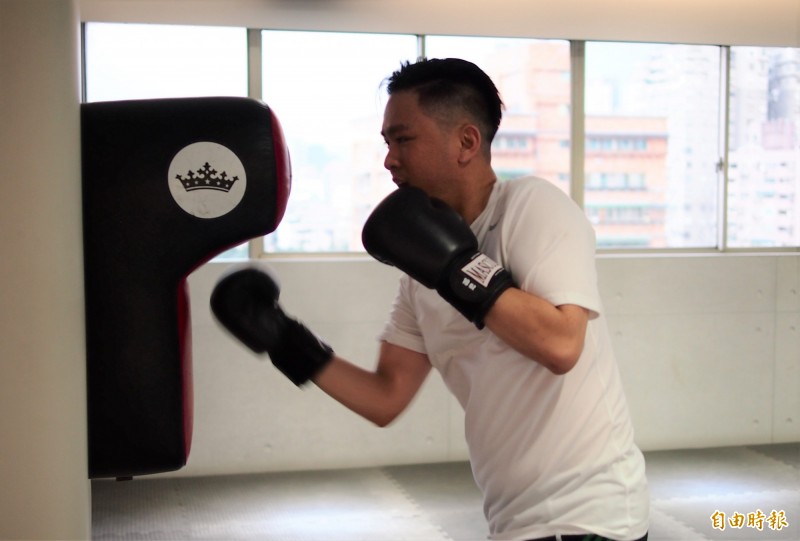 下午三點,沈威廷走出教室,踏入道館,收起眼鏡、戴上拳套,一個小時前還在教大學生《論語》的他,此時平舉雙拳,收起下巴,換上一副殺氣騰騰的表情,對著沙包重拳如雨點落下,汗水狂飆,痛快淋漓。平日在大學當約聘教師,下課還有沉重的論文壓力,走文人路線的他,沒想到竟在狂風暴雨般的拳擊活動中,獲得難得的平靜。