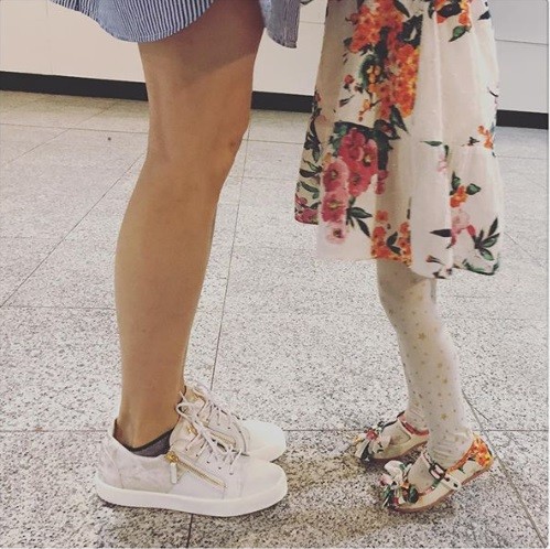 身高176公分的梁詠琪是演藝圈中著名的高個子美女,老公的身高也有185公分,身材皆相當高挑,他們的孩子也不遑多讓,3歲的Sofia身高明顯高於同年齡的孩子,梁詠琪即將在紅館舉辦演唱會,日前Sofia特地探媽媽的班,在場的人看到Sofia忍不住跟她玩起火車遊戲,Sofia站在媽媽身後,高度已快到達梁詠琪的腰部,發育非常良好,另外梁詠琪也PO出一張與女兒面對面站著的下半身照,更可看出Sofia的長腿,讓網友直呼「Sofia真是太高啦」、「完全看不出是3歲」。