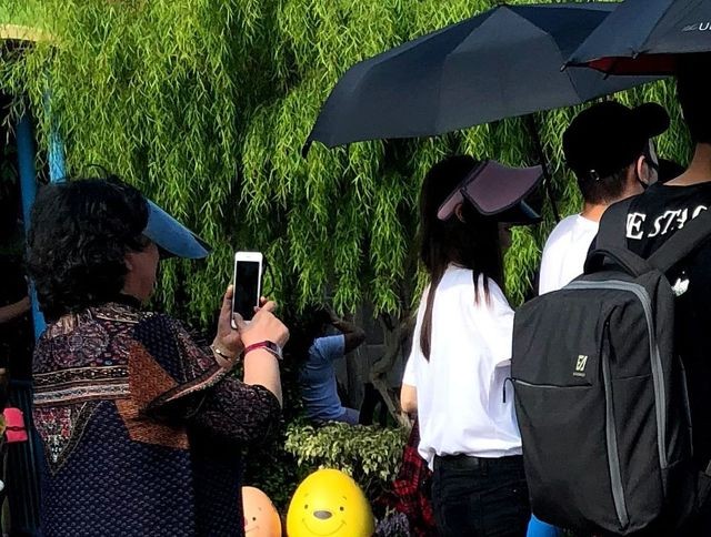 黃曉明的媽媽也旁隨行,她走在曉B的後方,拿起手機對著金孫猛拍,目睹小海綿的幸運網友,事後發文直讚:「超級可愛!」
