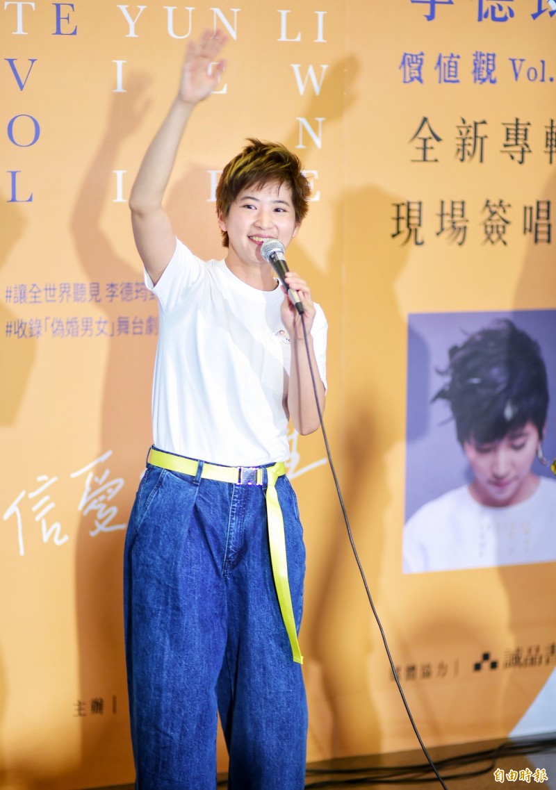 〔記者王心妤/台北報導〕李德筠4日推出新專輯《價值觀Vol.02》,哥哥也帶著2位姪子成為神秘嘉賓現身今日簽唱會現場,隨後她一連演唱8首歌,帶著全場跳起逗趣「雨刷舞」。新歌《我的世界沒有孤寂》是為舞台劇《偽婚男女》量身打造,李德筠笑說,無論是不是同志,其實生活還是有大大小小的櫃子,「希望大家與家人意見不合時,能一起聽聽這首歌。」