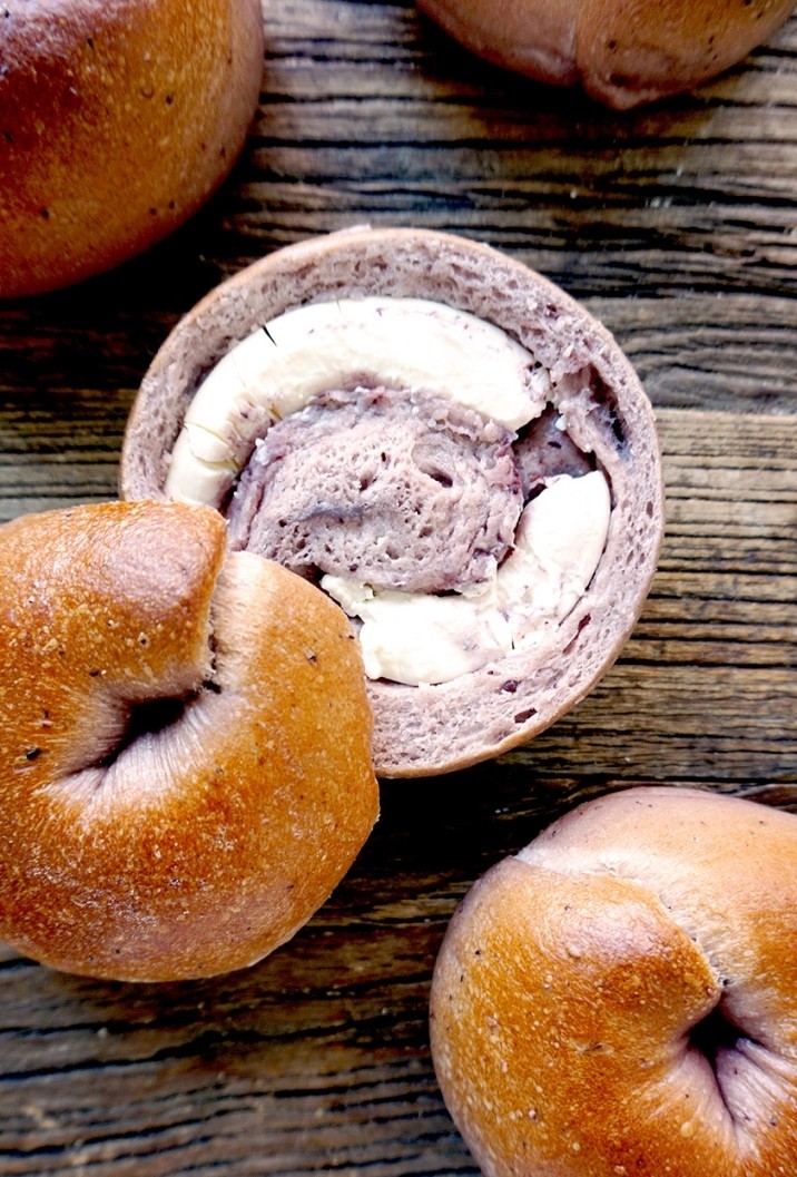 在台北月銷萬顆的爆餡MIOPANE藍莓起士貝果,60元。(新光三越提供)