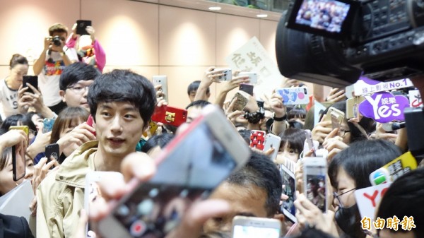 當他進到入境大廳,超過300名粉絲尖叫瘋狂接機,相機、手機滿場串,坂口健太郎都驚訝自己在台灣的超夯人氣,被擠在人群中的他不時回頭看接機粉絲,也向粉絲揮手,平常只有3分鐘的一段路,走了快10分鐘才到保姆車上。