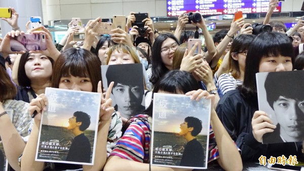 〔記者姚介修/桃園機場報導〕被日本少女喻為最理想的情人的日本藝人坂口健太郎抵台,這也是他新電影《今夜,在浪漫劇場與妳相遇》台灣首站,熱情粉絲擠爆機場,看到粉絲的熱情,坂口健太郎自己都很詫異,看起來也非常的開心。