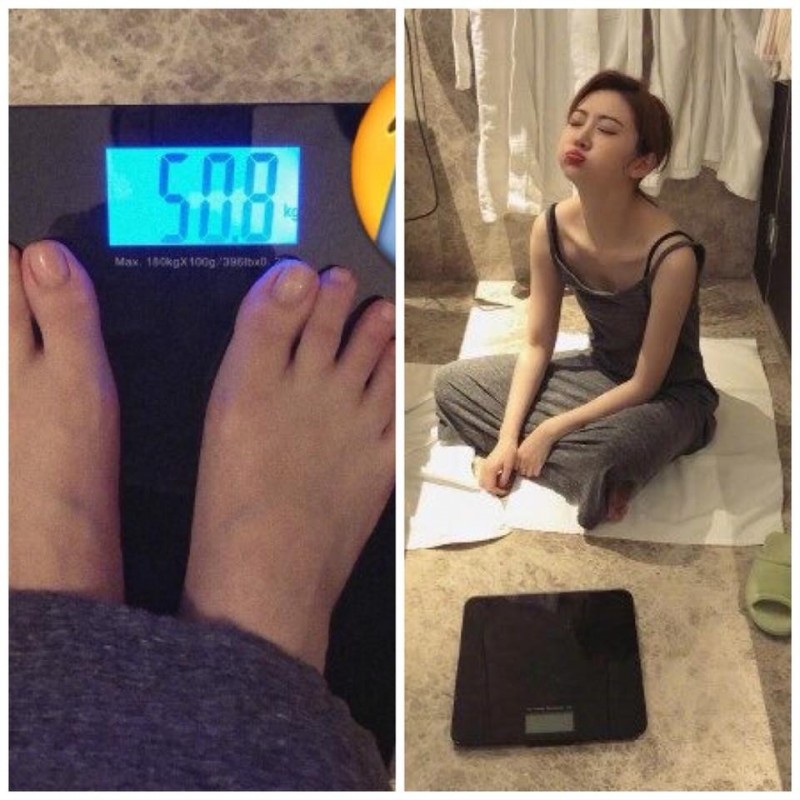 微博上流傳一張景甜身穿白上衣搭配黑色短褲,從側面看肚子明顯凸出,懷孕消息不脛而走,但其實景甜不久前才在微博發文,PO出一張體重機上顯示50.8公斤的照片,哀嚎「體重過百(斤)了,說明我不矮」,並坐在地上耍賴似的嘟起嘴,看來她的凸肚單純是因為發福。