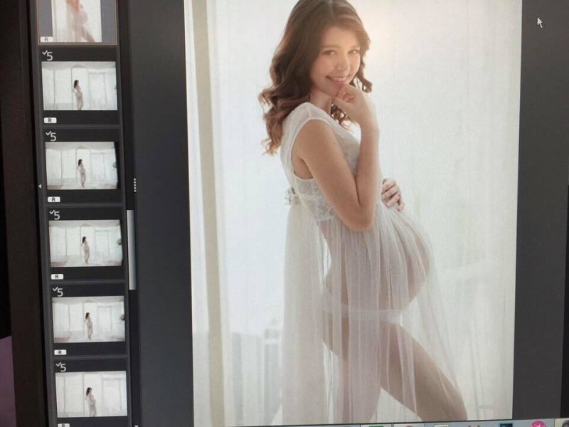 Kimberlly表示懷孕的時光飛逝,而她在產檢時發現胎位從原本的坐姿轉了下去,讓她和老公開心不已,笑說「真是媽咪的乖兒子」。另外她也分享了近照,只見身上的粉色睡衣從肩頭滑落,露出同色系的內衣,原本就豐滿的上圍因懷孕關係更加暴漲,四肢依舊相當纖細,除了孕肚其他地方完全看不出懷孕的跡象。過了幾日Kimberlly又曝光一張孕婦寫真的照片,她頂著一頭捲髮對鏡頭甜笑,身穿蕾絲長紗,孕肚及修長美腿顯得若隱若現,格外性感,讓網友們看了直呼「女人現在最美了」、「史上最正孕媽咪」。