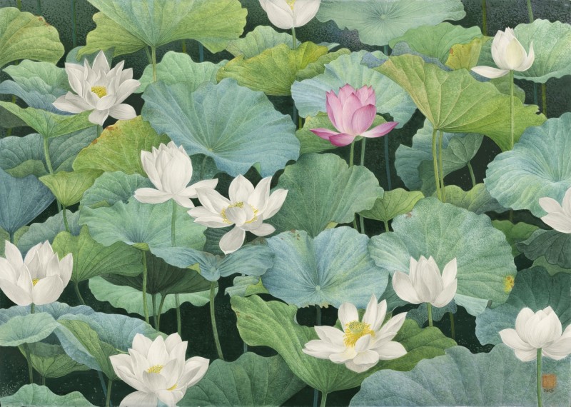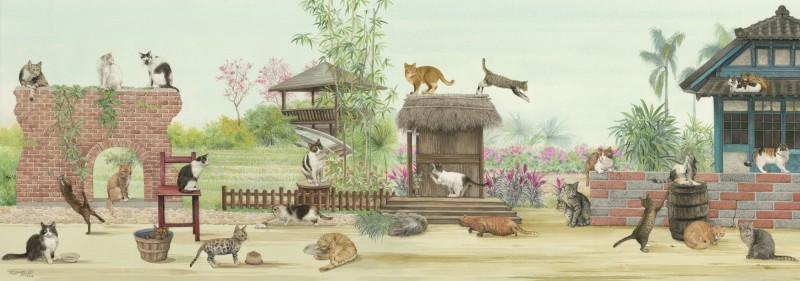 長期從事設計工作,柯鴻圖的繪畫功力扎實而深厚,擅長使用透明水彩展現宮廷畫般的細膩風格,畫作構圖簡潔,色彩鮮妍,氛圍幸福祥和,有「烏托邦的藝想家」之稱。這次個展,除了代表作「台灣12月令圖」、荷花系列外,也展出多幅他最近熱衷描繪的貓咪,家貓「小賓士」慧黠逗趣,渴盼飽食的流浪貓惹人憐愛,柯鴻圖透露,正打算融合〈清明上河圖〉概念和黑澤明電影《夢》中場景,打造貓咪樂園,完成橫式長幅的「貓的上河圖」。