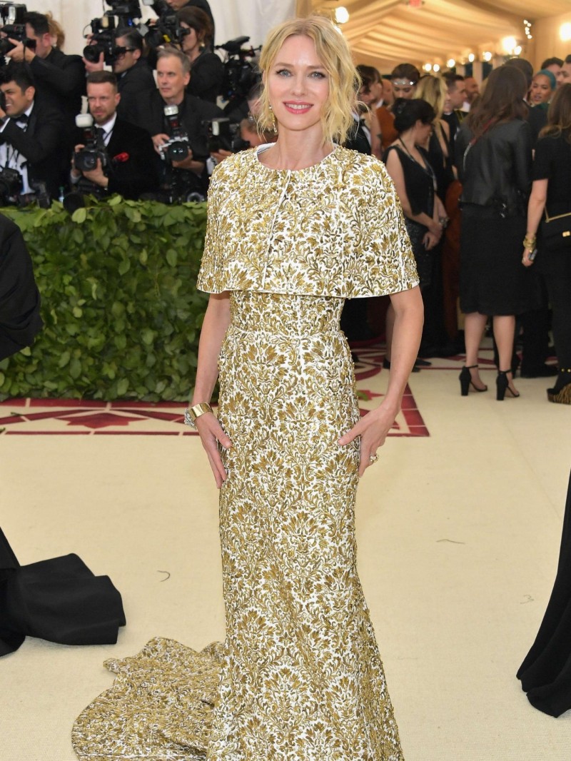 Met Gala今年以「天賜美體:時尚與天主教意象」( Heavenly Bodies: Fashion and the Catholic Imagination )為晚會主題,眾星換上Michael Kors Collection系列華麗登場,女星娜歐蜜‧華滋 (Naomi Watts)身著訂製款白金色刺繡禮服,搭配金色蛇紋高跟涼鞋;超模劉雯身著訂製款深紅色金紗線刺繡平口禮服,搭配蝴蝶結細腰帶,手拿金色蛇紋手拿包與禮服相應相襯。