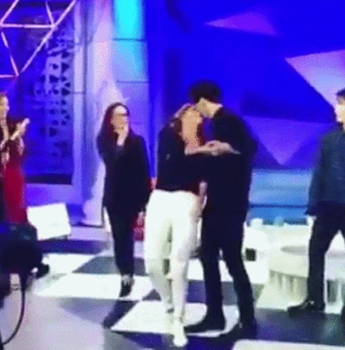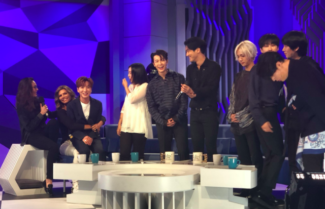 到了跳舞橋段時,該名女主持隨著舞步順勢倒在始源懷裡,她突然朝其嘴親上去,嚇得眾人直尖叫,雖「笑」果十足,但團員們的反應卻感到很自然,似乎非事先喬好,粉絲看到畫面後,認為此舉已算性騷擾,但也有人覺得,只是國情不同造成文化上的差異。