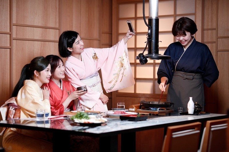 〔記者凃盈如/台北報導〕從台中發跡的頂級「樂軒和牛專門店」,首度進軍百貨,耗資3,000萬元,於聚焦金字塔頂端客層的台北信義新天地新光三越A4館推出「樂軒松阪亭」,全店走日式風格,提供松阪伊藤A5和牛、日本A5和牛及澳洲9+和牛等頂級食材,將於5月10日正式開幕。「樂軒松阪亭」空間為京都風庭園,透過燒肉、壽喜燒、涮涮鍋演繹頂級和牛美味,其中,壽喜燒為關西風味,使用「和三盆糖」呈現A5和牛關西風壽喜燒原汁原味。迎接母親節,品牌於整個五月推出「霸氣雙饗」戰斧牛排四人燒肉套餐12,800元+10%,含澳洲9+戰斧牛排、厚切牛舌、橫膈膜、日本A5和牛、西班牙伊比利豬、北海道生食級大干貝,並附贈龍蝦火鍋;包廂客人更能預約穿著每套逾十萬元的日本正絹振袖和服。