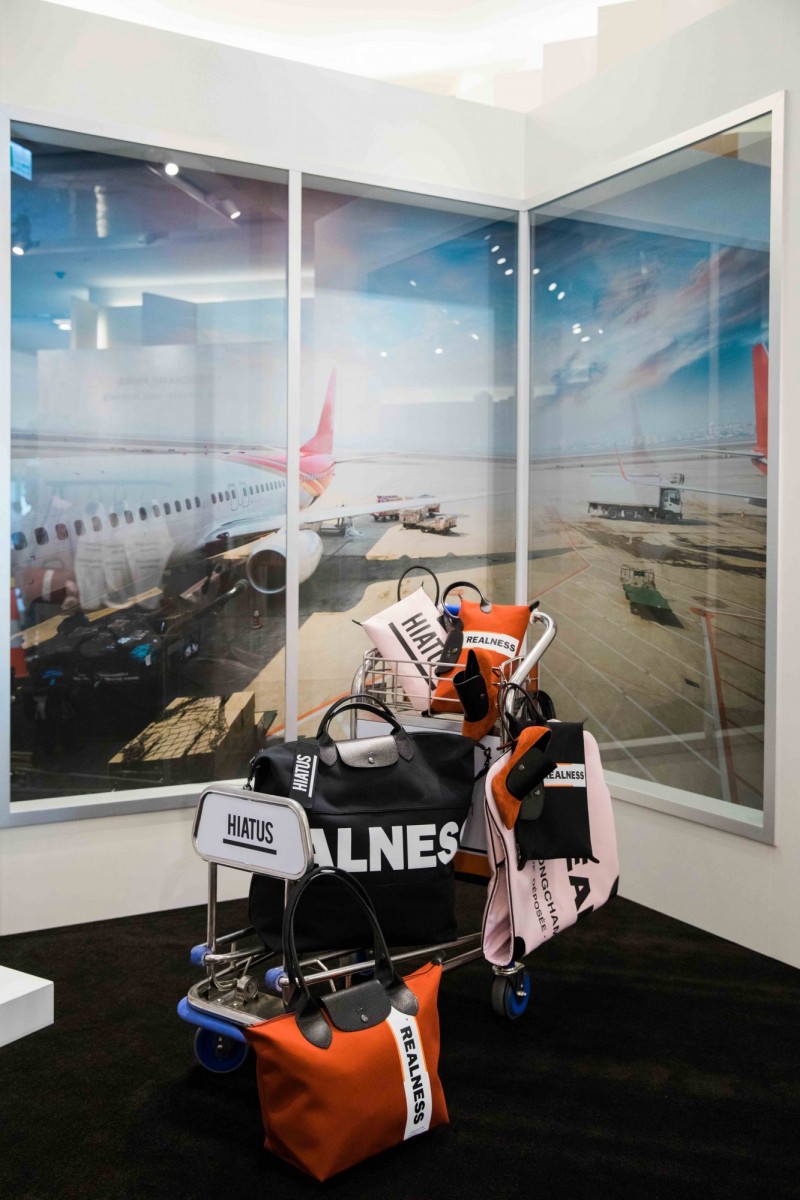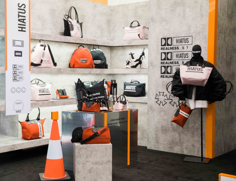 顯眼的兩個標語串起Longchamp by Shayne Oliver聯名系列的核心精神:「HIATUS」表示「空檔」與「間隔」,「REALNESS」則象徵「真實」生活,這組由Longchamp行政總裁暨創意總監Sophie Delafontaine與紐約潮牌Hood By Air創辦人Shayne Oliver的跨界合作集結歷史悠久的工藝技術、法式優雅與大膽的解構美學,Longchamp經典的Le Pliage手袋被重新詮釋,一連串超乎想像的創意大改原本型態,打造出男女皆適的皮件、鞋履、服飾和西裝袋等都會時尚單品,由兩層獨立隔層組成的「雙生包」、Le Pliage長柄斜背包、暱稱「骨折包」的Sling Bag,以及一款可做為手拿包的「抱枕包」都是陣中詢問度「爆表」之作,每款貨量平均僅約10至20件,預期將掀搶購大戰。