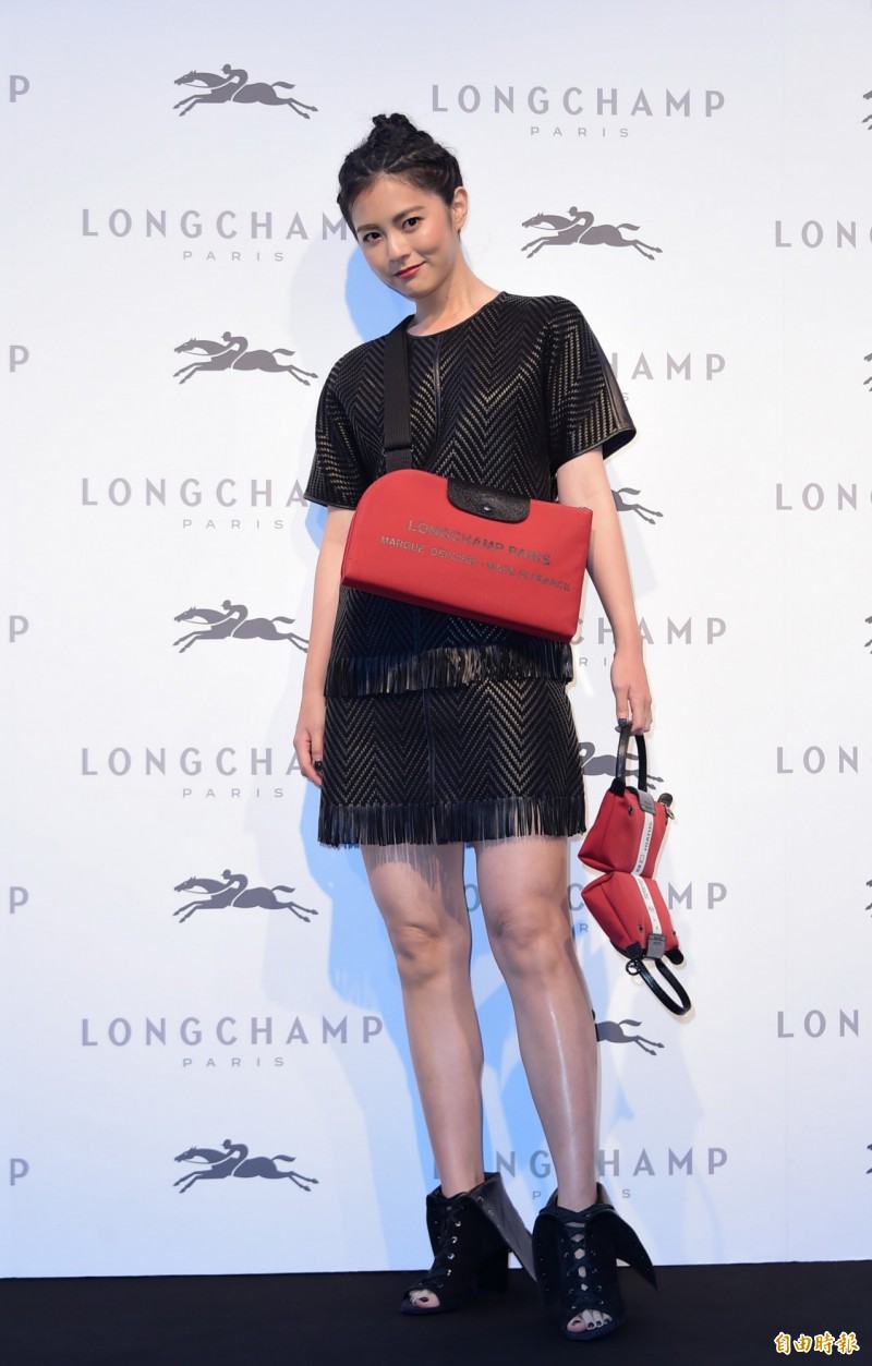 任容萱今(10)日出席法國精品Longchamp在台北101旗艦店慶祝聯名系列「Longchamp by Shayne Oliver」的上市派對,以「暗黑系」造型搭配該系列「骨折包」耍酷。她笑稱自己正在「轉型」,不是表面上所看到的「乖乖女」、也會使壞。