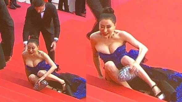 中國F奶小咖女星邢小紅在今年紅毯上假摔的畫面已被瘋傳,另外馬蘇賴在紅毯6分鐘不走也遭到眾人責罵。其實多年前就曾發生過類似事件,2012年楊冪參加坎城影展時也被爆出在紅毯上待太久而遭到保全驅離,楊冪疑似不滿而比出中指,消息一出掀起軒然大波,網軍們紛紛飆罵她丟臉丟到國際,但事後楊冪澄清她走的比較慢是為了讓媒體拍照,並非故意死賴著不走,而比出手指則是為了確定拍照位置,且她伸出的是食指而非中指,經過一番功夫才平息了外界的怒火。