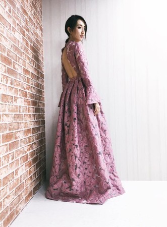 照片中,柯佳嬿身穿一襲紫色長袖蕾絲禮服,洋裝正面在胸口做了小V字領設計,看起來相當莊重典雅,一轉身背面可是大有看頭,大U字的剪裁延伸至腰際,白皙的美背整個一覽無遺,引來老公坤達分享貼文並寫下「美叮美噹!!!」,更大讚老婆「怎麼能夠!」並附上雙眼冒愛心的表情符號,愛妻程度簡直快閃瞎眾網友。