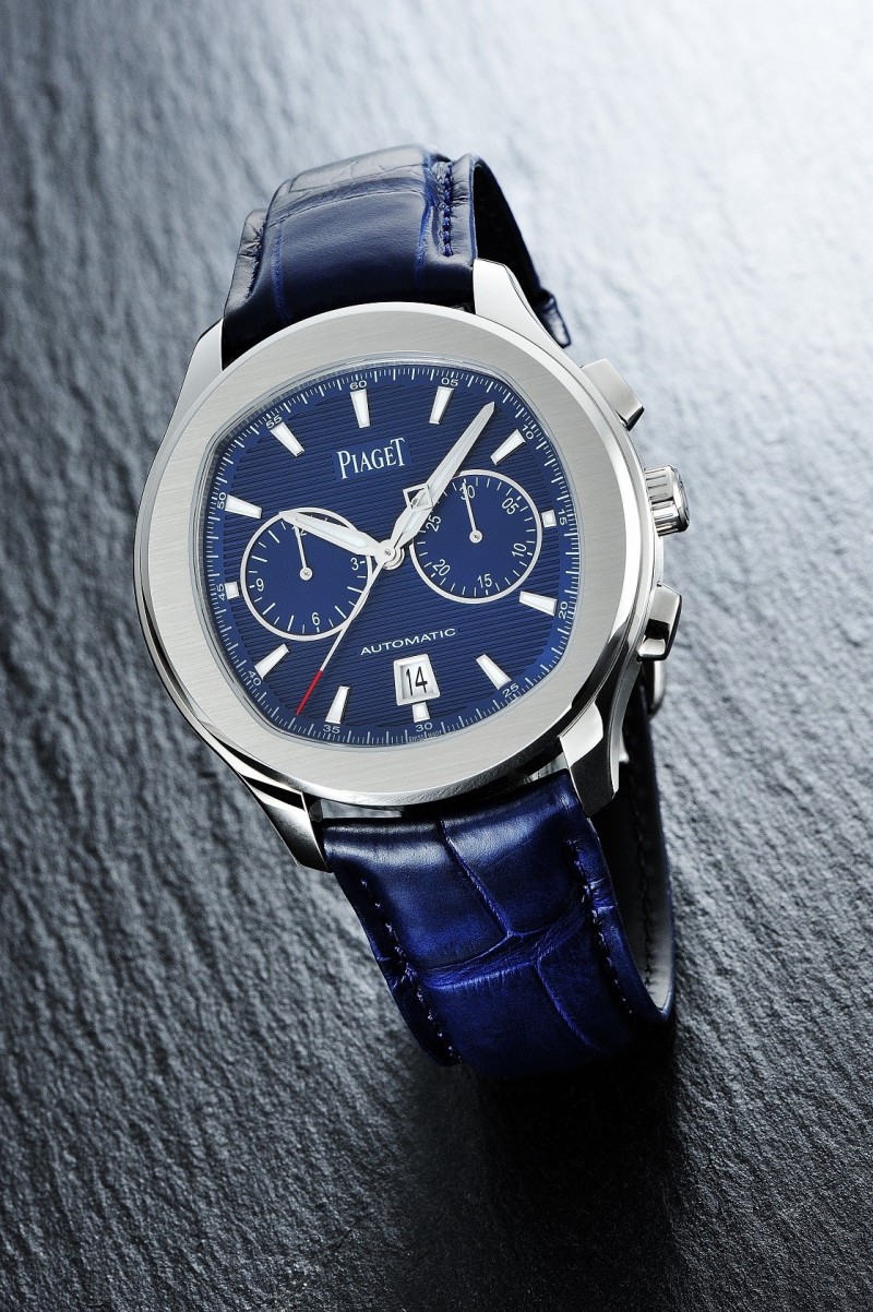 以搭載「日期顯示」或「日期+計時碼錶」的伯爵(Piaget)Polo S腕錶,鍍上「伯爵藍」的全新錶盤令人眼睛一亮,襯以深藍色短吻鱷皮錶帶或不銹鋼錶鍊,時尚造型耳目一新,深刻詮釋品牌多年來將音樂、電影、藝術及體育領域等顯赫人士薈萃一堂的「Piaget Society」精神。