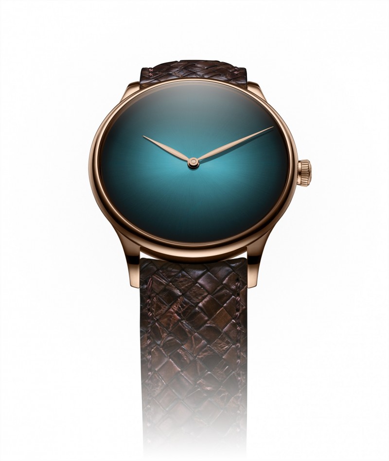 亨利慕時(H. Moser & Cie.)冒險者藍湖色概念腕錶(Venturer Concept Blue Lagoon)巧妙平衡「正式」(Formal)與「休閒別緻」(Casual Chic)的風格兩端,時尚又古典,關鍵就在島嶼天堂般的「藍湖色」,錶盤色彩生動顯現,就算捨棄品牌標誌和時標,依舊是眾所矚目的焦點:極簡奢華,一目瞭然,而且絕不錯認。