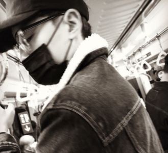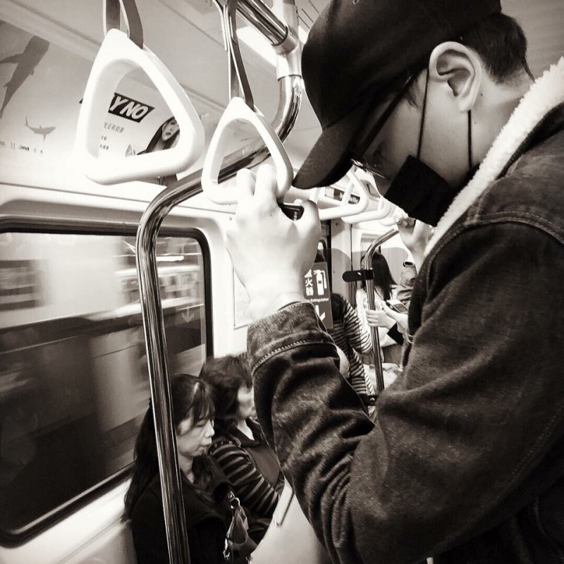 鄭元暢戴上帽子、口罩及眼鏡「變裝」,遮住大半張臉,只露出眼睛,還被同行友人拍下照片,從背景看來,捷運車廂雖是尖峰時間,身旁擠滿了人,但大家不是忙著滑手機,就是盯著窗外發呆,完全沒人發現旁邊站著鄭元暢。