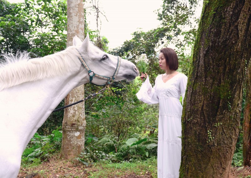 〔記者羅子欣/台北報導〕丁噹近日擔綱《搭錯車》音樂劇女主角,唱而優則演的她獲邀擔任德國小甘菊形象大使,日前拍攝廣告,丁噹穿著一襲優雅白裙,穿梭在山林間,畫面十分唯美,但其實吃了不少苦頭;除了成為蚊子的目標,還碰到一起對戲的馬失控,因回到大自然太興奮,一直想往樹林跑,丁噹多次跟不上腳步,變成被馬遛,差一點就跌入山谷,期間還被馬蹄踩了一腳,痛到飆淚。