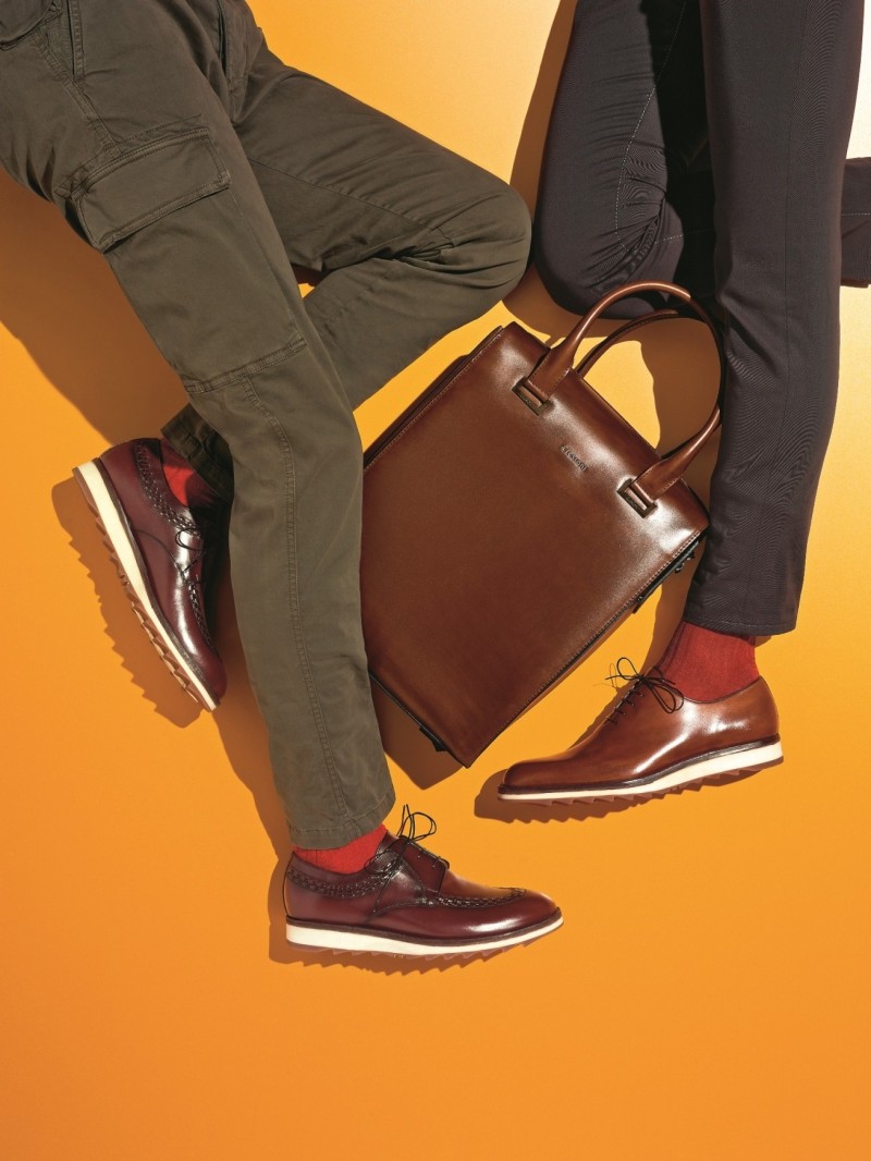 義大利頂級製鞋品牌a.testoni本季以奢華姿態演出運動風華,將其拿手的手工紳士鞋結合雙色運動膠底,設計出貴族般的運動風情。Salvatore Ferragamo同樣看準商旅族群所需,以頂級皮革打造Cube運動鞋系列。