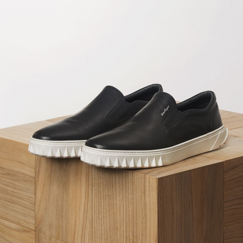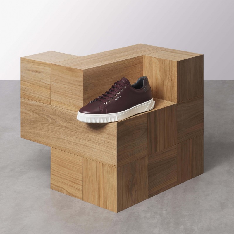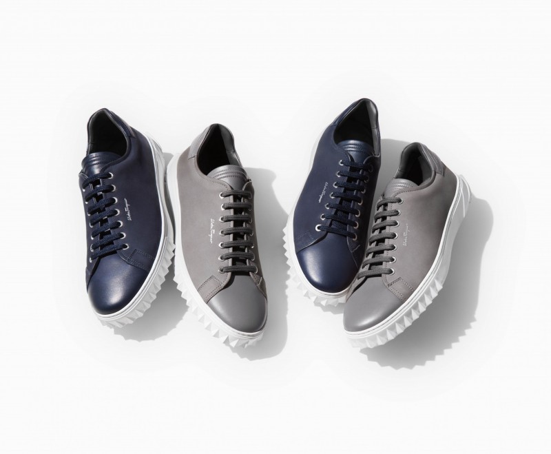 Salvatore Ferragam全新Cube運動鞋系列主打極簡風格,線條採偏尖頭造型,鞋身以高級皮質製作,搭配橡膠鞋底,並添加獨特的鞋底邊緣橡膠鉚釘裝飾等時尚細節。鞋面搭配軟墊鞋舌,最後印上銀色品牌標識,時髦奪目。該系列共有灰色、海軍藍、黑色可選。