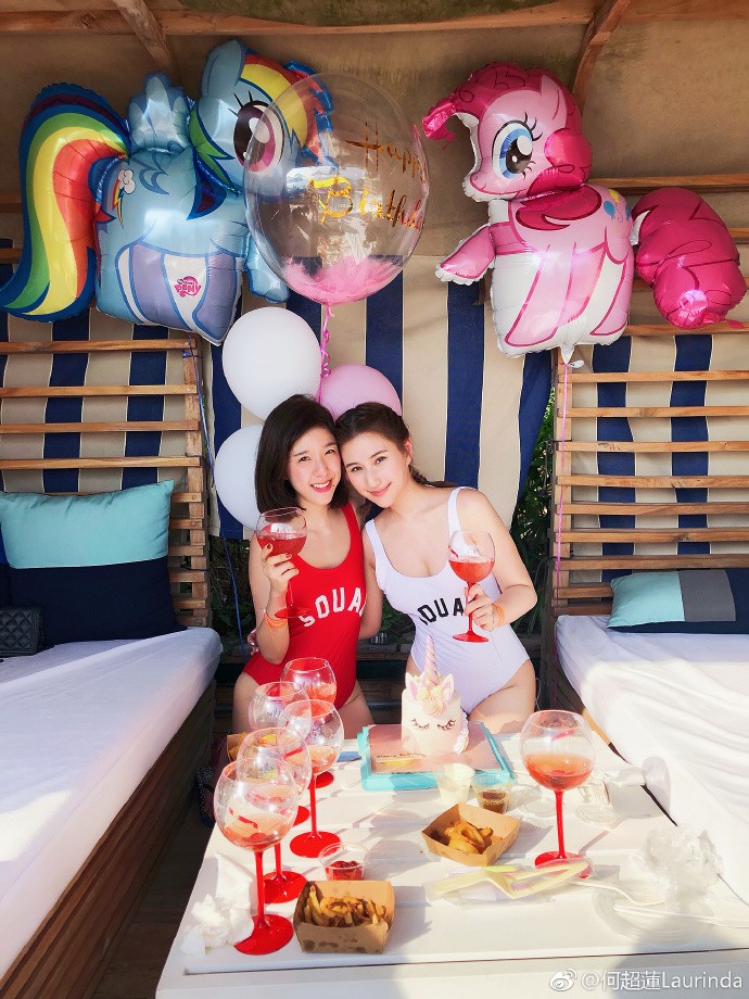 本月9日何超蓮迎來27歲生日,與不同的人分了好幾批慶祝,過得相當盡興,近日換她幫朋友慶生,只見她將長髮綁成辮子頭,身穿白色開高衩泳裝,胸前的深U設計讓她露出深邃事業線,渾圓的雪白美乳更是成為焦點。另外她還與10位好友一同擠在裝著水的木桶中,每個人的穿裝都與何超蓮相似,緊緊靠在一起做出不同的撩人動作,讓人眼睛不知該往哪看,粉絲們直呼「一盆美女」、「無緣無故流鼻血」、「滿園春色關不住」。