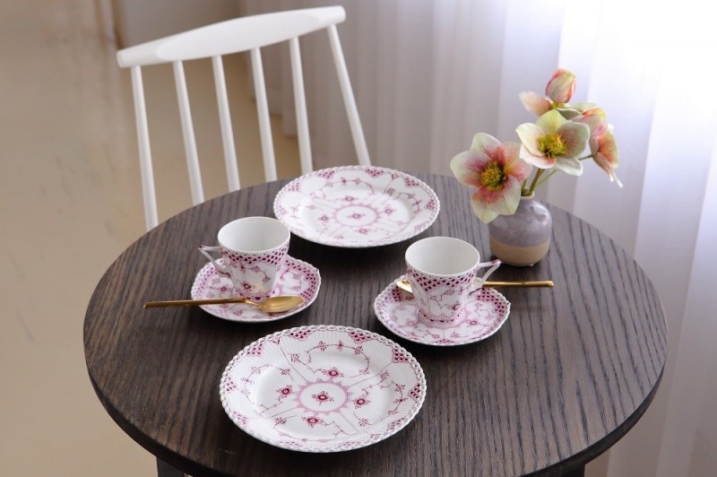 除了梅花盤之外,皇家哥本哈根本次也特別推出媲美「丹麥之花」系列的「皇家紫紅花邊唐草」,其獨特的釉上彩,有絢麗討喜的色澤,而其使用螺貝中提煉出帶有紫紅色的染料,是尊貴的象徵。歡慶皇家哥本哈根登台30週年,瓷廠特別繪製丹麥王儲王妃也擁有的「皇家紫紅花邊唐草雙人午茶組」,並加碼特製全球獨賣的「皇家紫紅全花邊唐草杯盤組」,各為全球限量60套、40套。