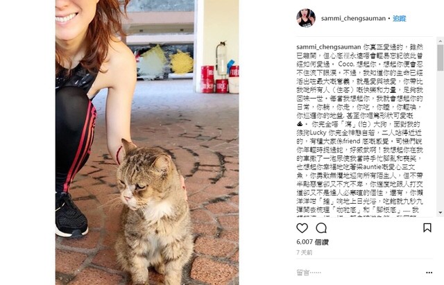 2年前Coco過世,鄭秀文還安排Coco的身後事,一週前她想起Coco,為Coco寫下長文,「我知道你的生命已經活出最大意義,就是愛與被愛,你帶給我們所有人(住客)快樂和力量,足夠我回味一世」。