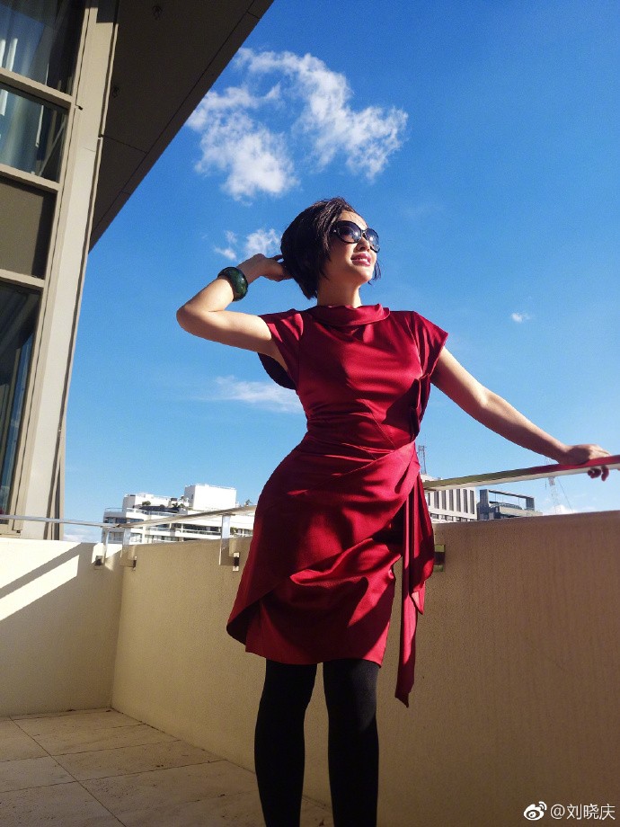 只見劉曉慶頂著一頭俏麗短髮,在大太陽下戴著墨鏡,身穿深紅色洋裝搭配黑色褲襪,露出一雙纖細美腿,並對著鏡頭擺出各種姿勢,衣服的緊身設計突顯出她的豐滿上圍,纖細腰肢更是引人注目,在她身上幾乎看不到「歲月不饒人」這句話,劉曉慶也自信表示是她「不饒過歲月」,即使年過花甲之年仍然不服老,讓粉絲們直呼「歲月在姐姐面前是殘兵敗將」、「真是跨越時代的美女」。