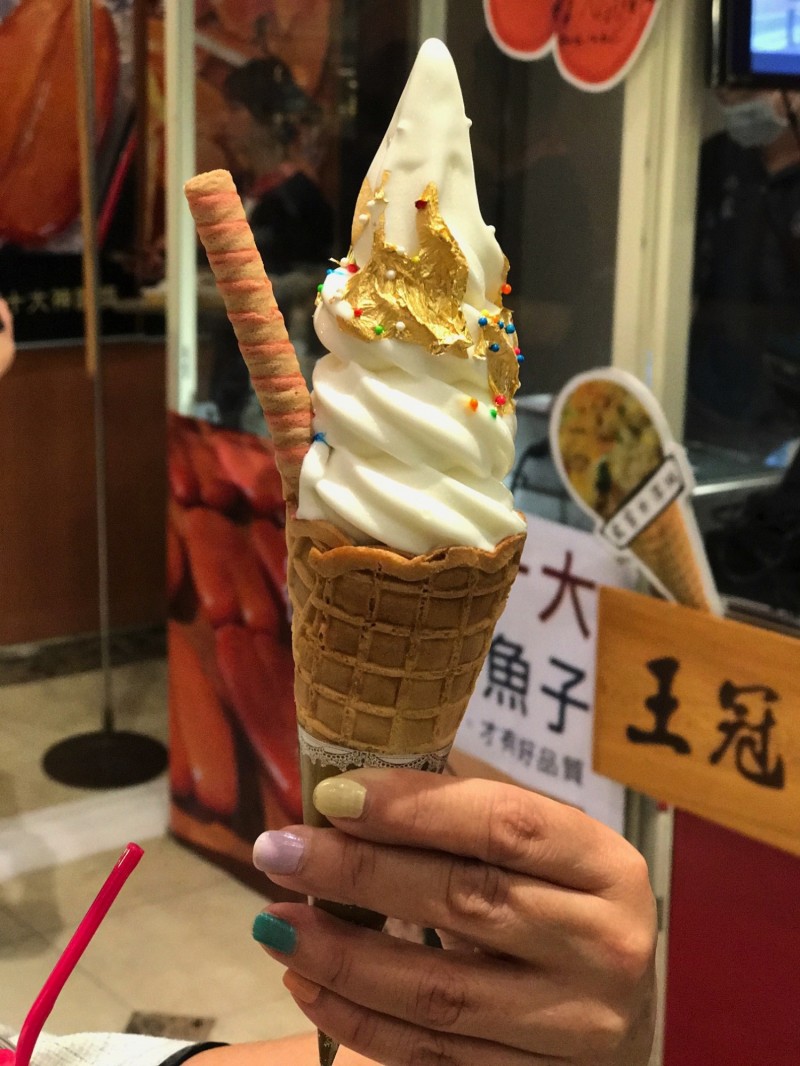 本次台南展期間正逢初夏,現場也有多家人氣冰淇淋,如台南神農街假日限定的Sam’s Soft-Serve,推出初登場的「金箔冰淇淋」,是IG必打卡亮點,而林家烏魚子,也推出限量的烏魚子冰淇淋,在香草冰淇淋內可嚐到烏魚子,感受鹹香與甜蜜交融的獨特滋味,讓人不禁一口接一口,此外也有使用甲仙芋頭「第一家芋冰城」的「顆粒芋頭冰」、玉井之門「芒果冰淇淋」。