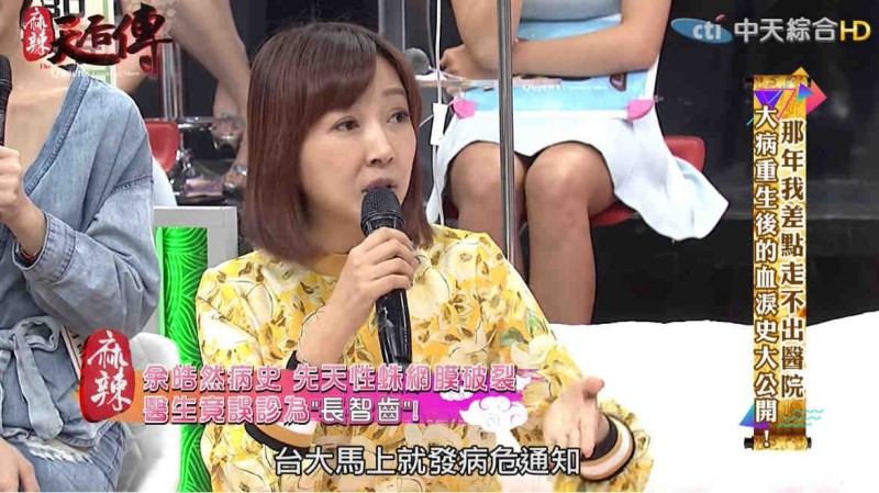 〔記者鍾智凱/台北報導〕余皓然日前上《麻辣天后傳》,爆25年前突然頭痛到吐,醫生以為是長智齒所以頭痛,後來余皓然腦出血,轉送台大,居然發出病危通知。 最後余皓然是靠著一台針對腦出血3公分以內的伽瑪刀救回一命,且沒有健保花了她200萬,「手術是用4個鋼釘鑽進頭骨,麻藥,但我是清醒的,鑽頭骨我整個哭到不行。」余皓然上節目自爆曾腦出血,醫院發出病危通知。(翻攝YouTube) 娛樂城 通博娛樂城 老虎機