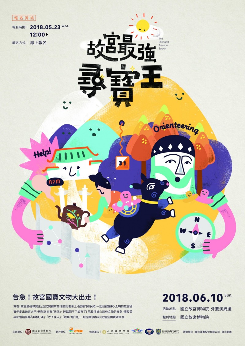原來是因為故宮的博物館「超連結」,這次不僅跨界由定向越野協會執行「尋寶活動」,還獲得台灣創價學會、順益原住民博物館與衛理女中等「鄰居」協辦。童年漫畫與綠光劇團則成為贊助者,故宮表示,參加「故宮最強尋寶王」活動的民眾,將有機會獲得童年漫畫贈送的《諸葛四郎》漫畫,以及綠光劇團年度大戲《再會吧北投》音樂劇票券。