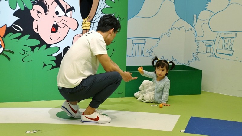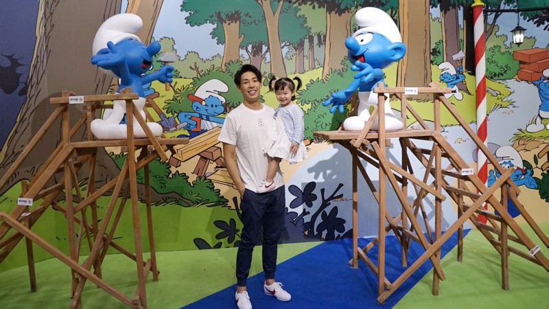 〔記者吳志偉/台北報導〕藍鈞天今天參觀「藍色小精靈愛在17」特展,並且首度帶著女兒與媒體見面,為此父女倆特別盛裝打扮了一下,因為女兒想見卡通中的角色「小美人」,所以還幫她精心打扮得跟小美人一樣美,女兒也非常開心。