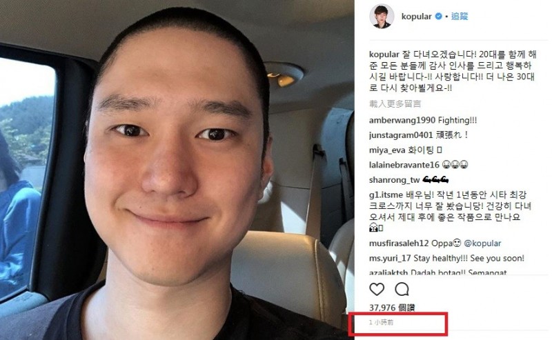 入伍前一刻,高庚杓在個人IG更新照片並向粉絲道別:「我會好好回來的!感謝20代一路陪伴走來的所有人,祝大家幸福!愛你們!我會向著更好的30代回歸,再次與你們相見!」高庚杓PO上照片,已經先行理了小平頭,模樣帥氣靦腆,讓不少粉絲看了相當不捨。