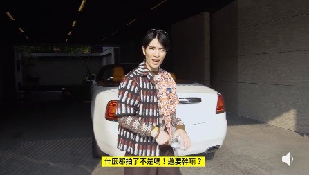 蕭敬騰駕駛3500萬勞斯萊斯入鏡,帶觀眾一窺他市值超過2億的豪宅,影片中不但可以看見庭院造景、露天游泳池,寬敞的客廳擺放昂貴的紅色鋼琴,愛打球的老蕭家裡還裝置籃框,角落驚見他65萬「愛駒」TRIUMPH-T100,整面公仔牆則放置「雷神」、「死侍」、「哈莉昆恩」、「小丑」、「柯比布萊恩」等琳琅滿目的公仔,此外老蕭寶貴的金曲歌王獎盃也入鏡,就放在他香港金像獎最佳新人獎座旁邊,被問到邀請過誰參觀?蕭敬騰賣萌說:「周杰倫大哥啊、小豬大哥啊、李榮浩哥哥啊。」